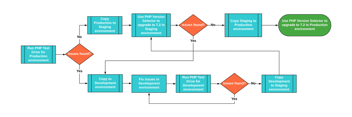 - Copy your site to a PHP 7.2 server and test to ensure that no issues are encountered. If problems are found, document both the problem and resolution so that fixes can be implemented before the live site is upgraded