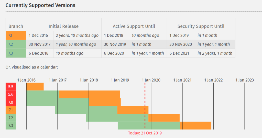 The earlier versions of PHP are no longer receiving security updates. Which means there is an increased likelihood that your site will become compromised. Due to this, most hosting providers will no longer provide access to servers with outdated PHP. Version 7.2 will be moving out of official support in November 2019 some hosts are forcing upgrades regardless of compatibility.